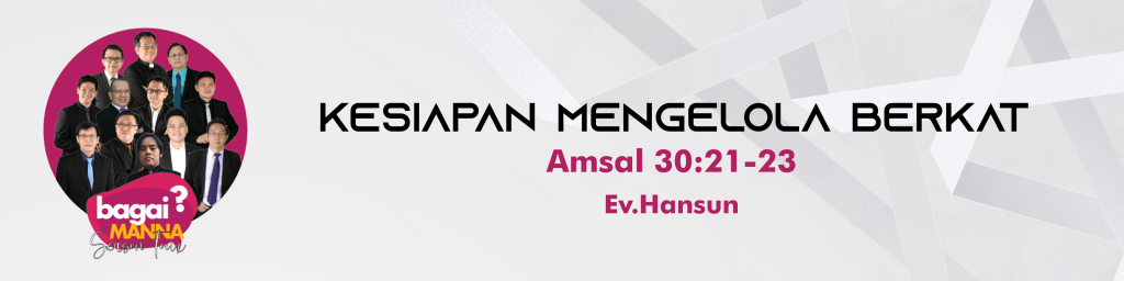 bagaiMANNA 28.07.21 | Amsal 30 : 21 – 23 | Kesiapan Mengelola Berkat