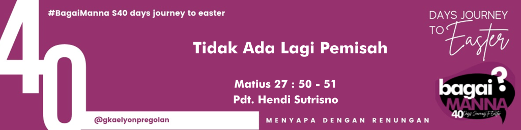 bagaiMANNA 28.02.22 | Matius 27 : 50 – 51 | Tidak Ada Lagi Pemisah
