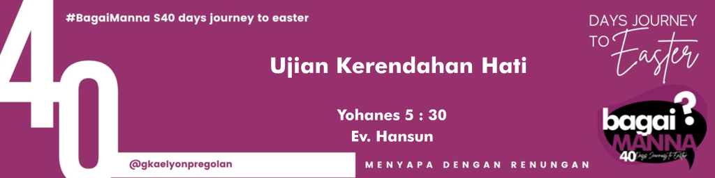 bagaiMANNA 23.03.22 | Yohanes 5 : 30 | Ujian Kerendahan Hati