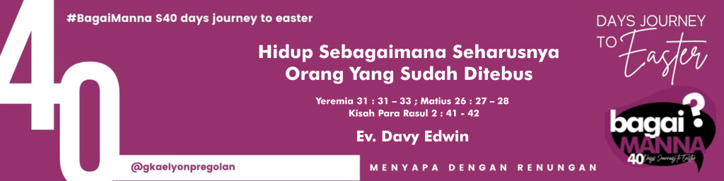 bagaiMANNA 31.03.22 | Yeremia 31:31-33 ; Matius 26:27-28 ; Kis. 2:41-42 | Hidup Sebagaimana Seharusnya Orang Yang Sudah Ditebus