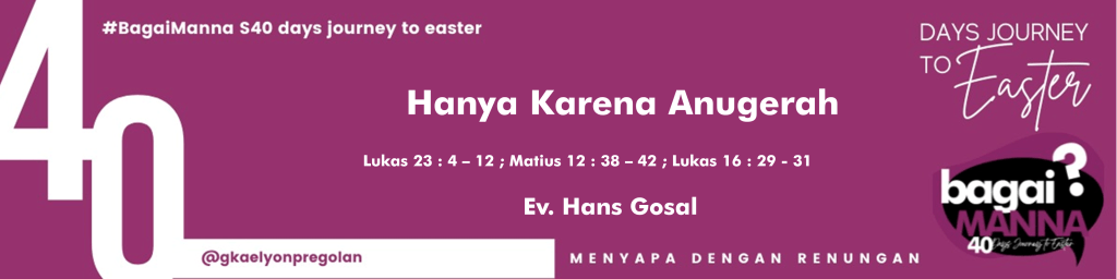 bagaiMANNA 08.04.22 | Lukas 23:4-12;Matius 12:38-42;Lukas 16:29-31 | Hanya Karena Anugerah