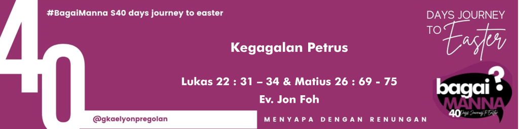 bagaiMANNA 09.04.22 | Lukas 22 : 31 – 34 & Matius 26 : 69 – 75 | Kegagalan Petrus