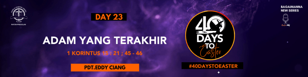 bagaiMANNA 40 Days To Easter 20.03.23 | 1 Korintus 15 : 21 ; 45 – 46 | Adam yang Terakhir